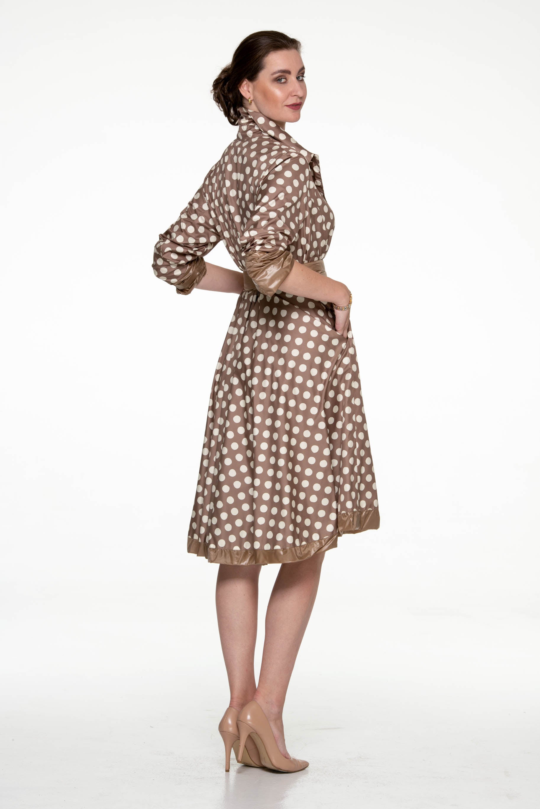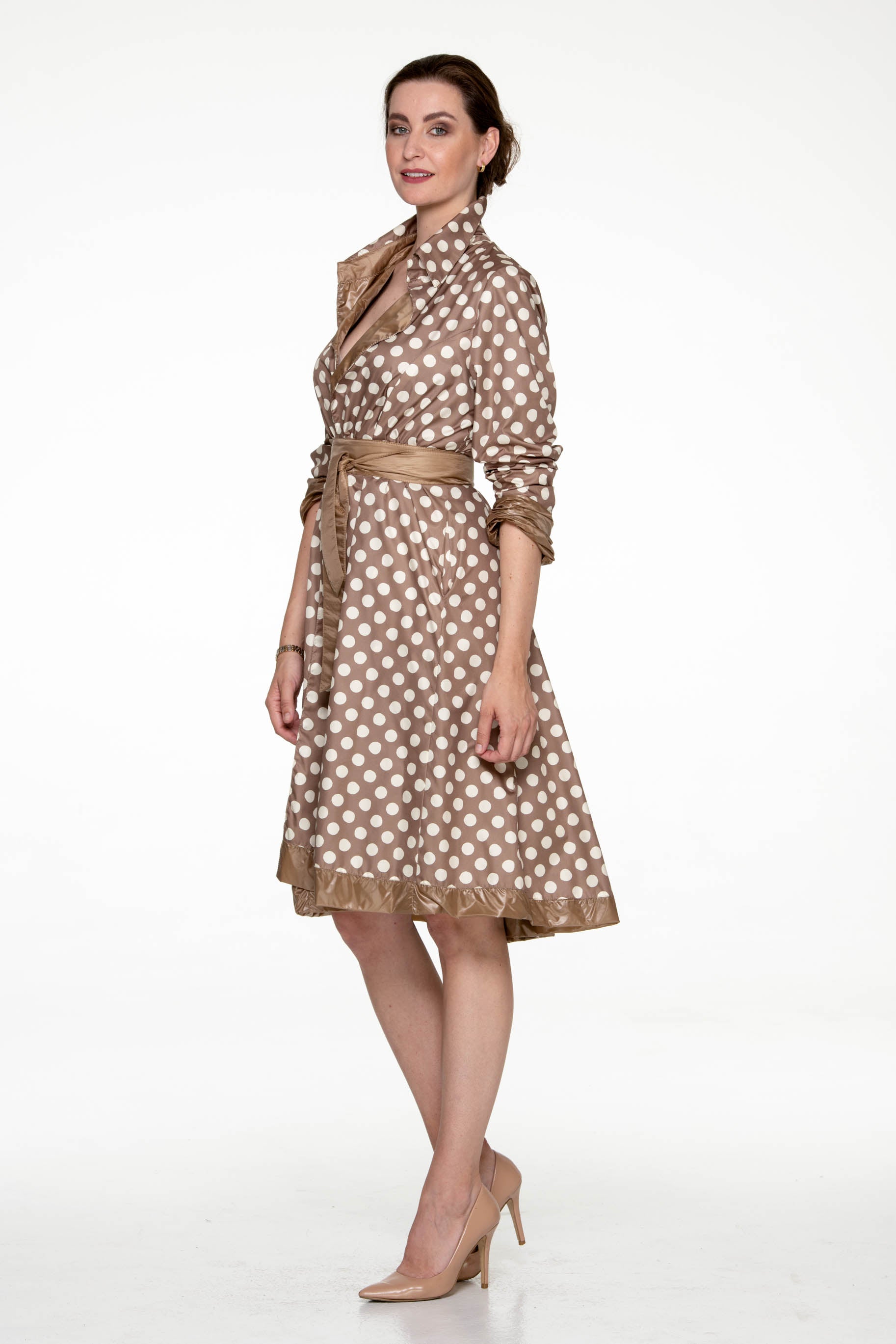 Coat with collar, narrow silhouette, circle skirt, lining /dots/