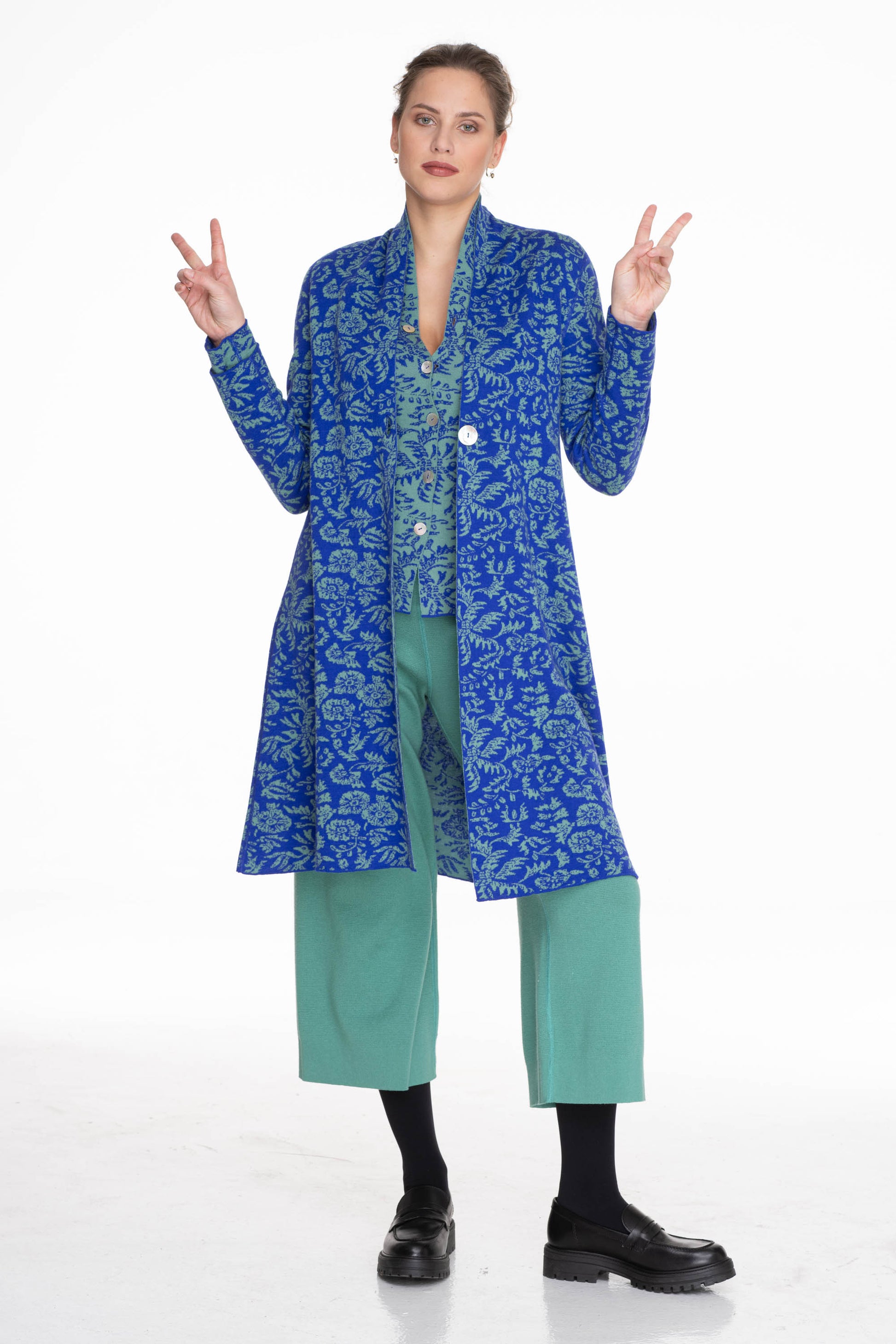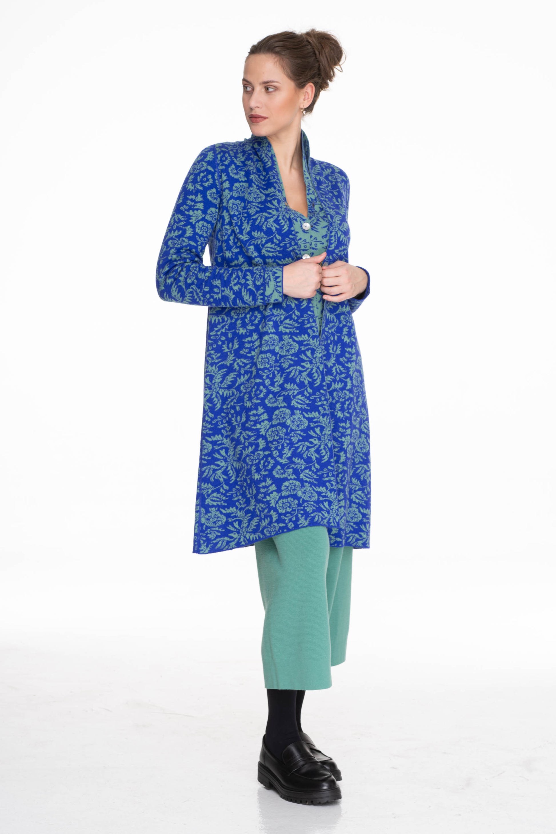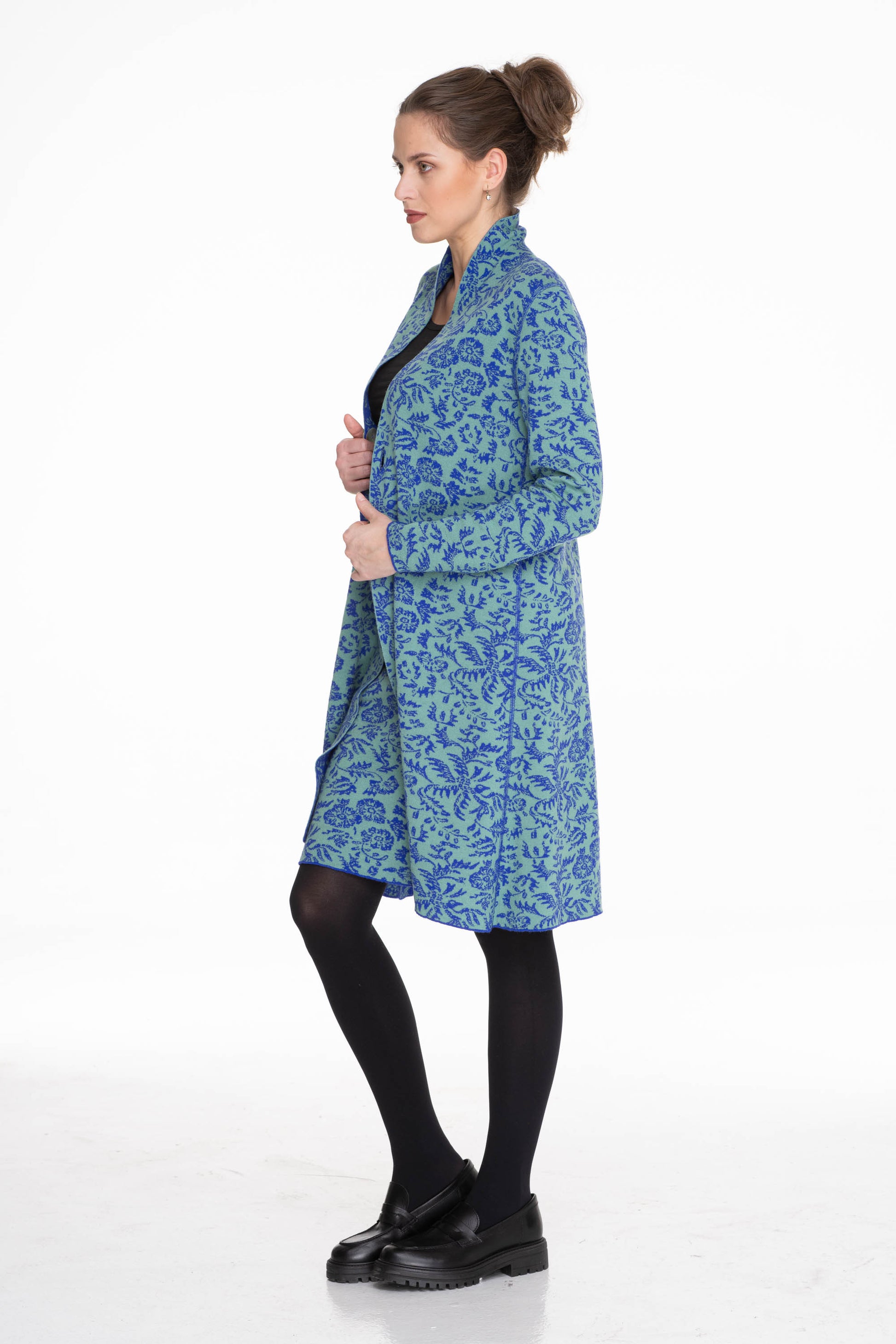 Oboustranný dlouhý rozšířený kabát/svetr s žakárovým vzorem /květinový vzor/