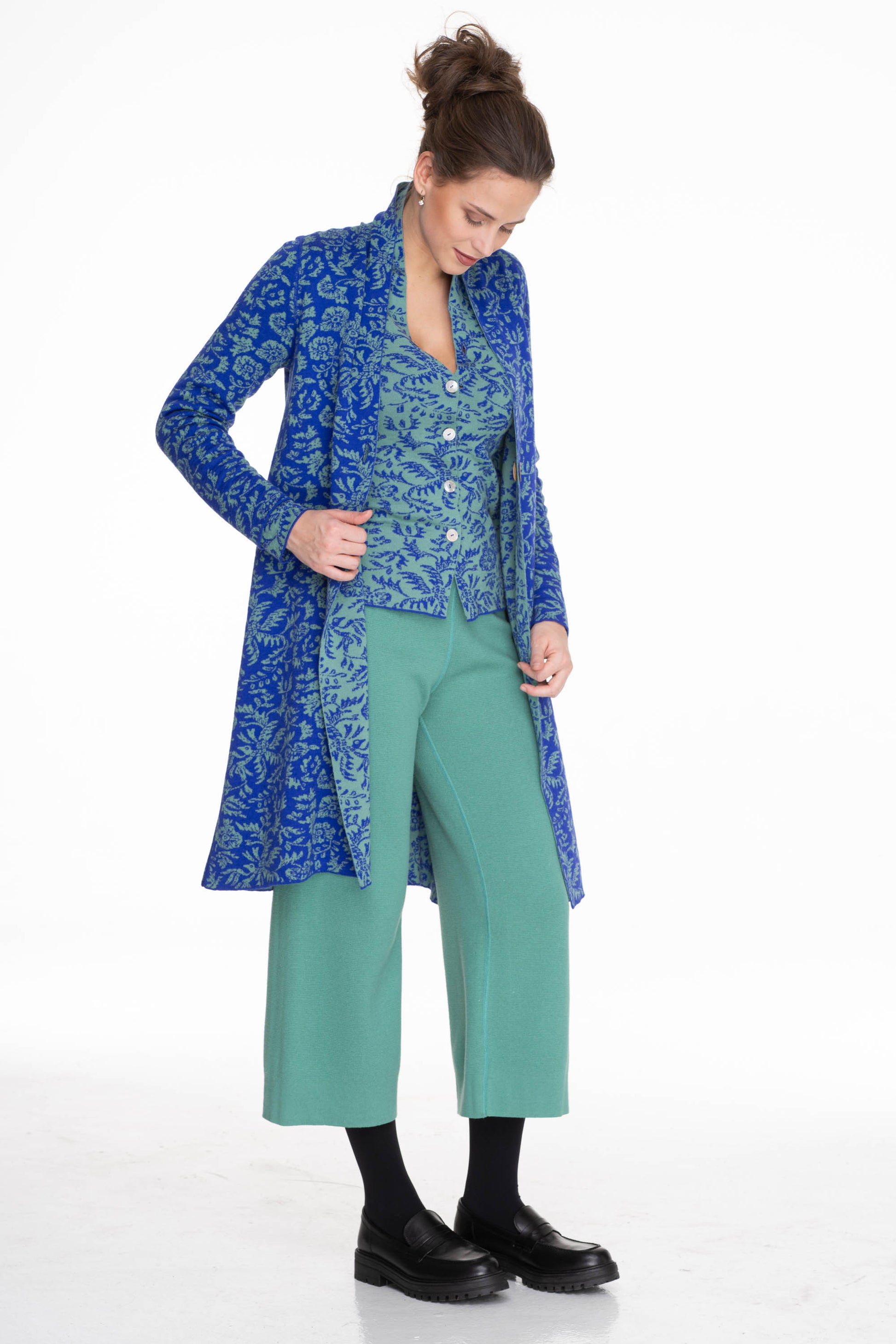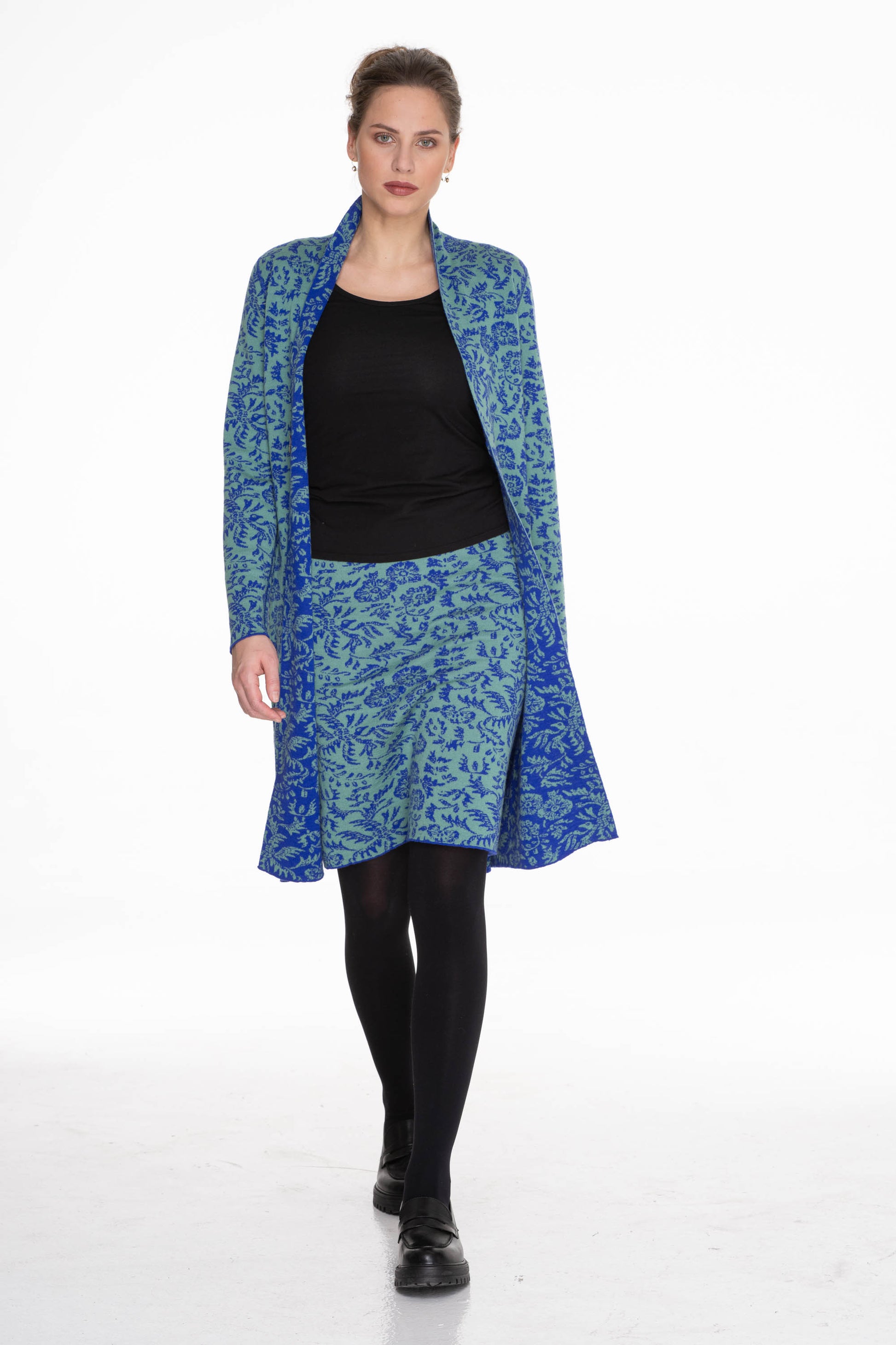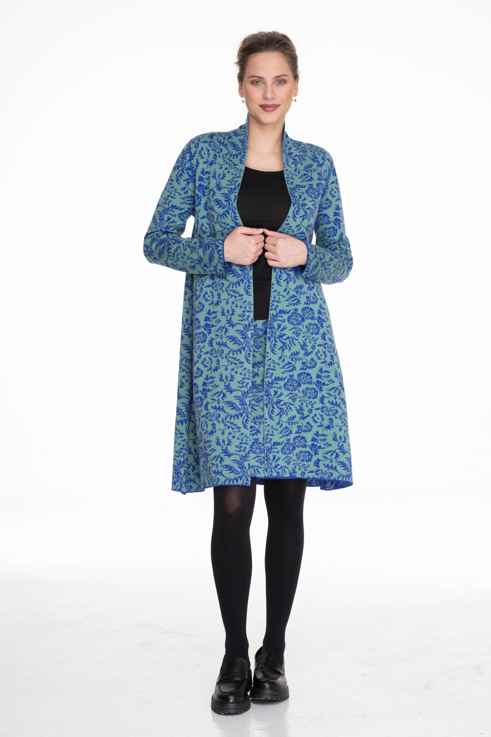 Oboustranný dlouhý rozšířený kabát/svetr s žakárovým vzorem /květinový vzor/