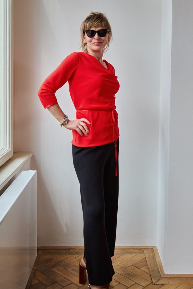 Halenka s volně střiženým límcem, 3/4 rukávy