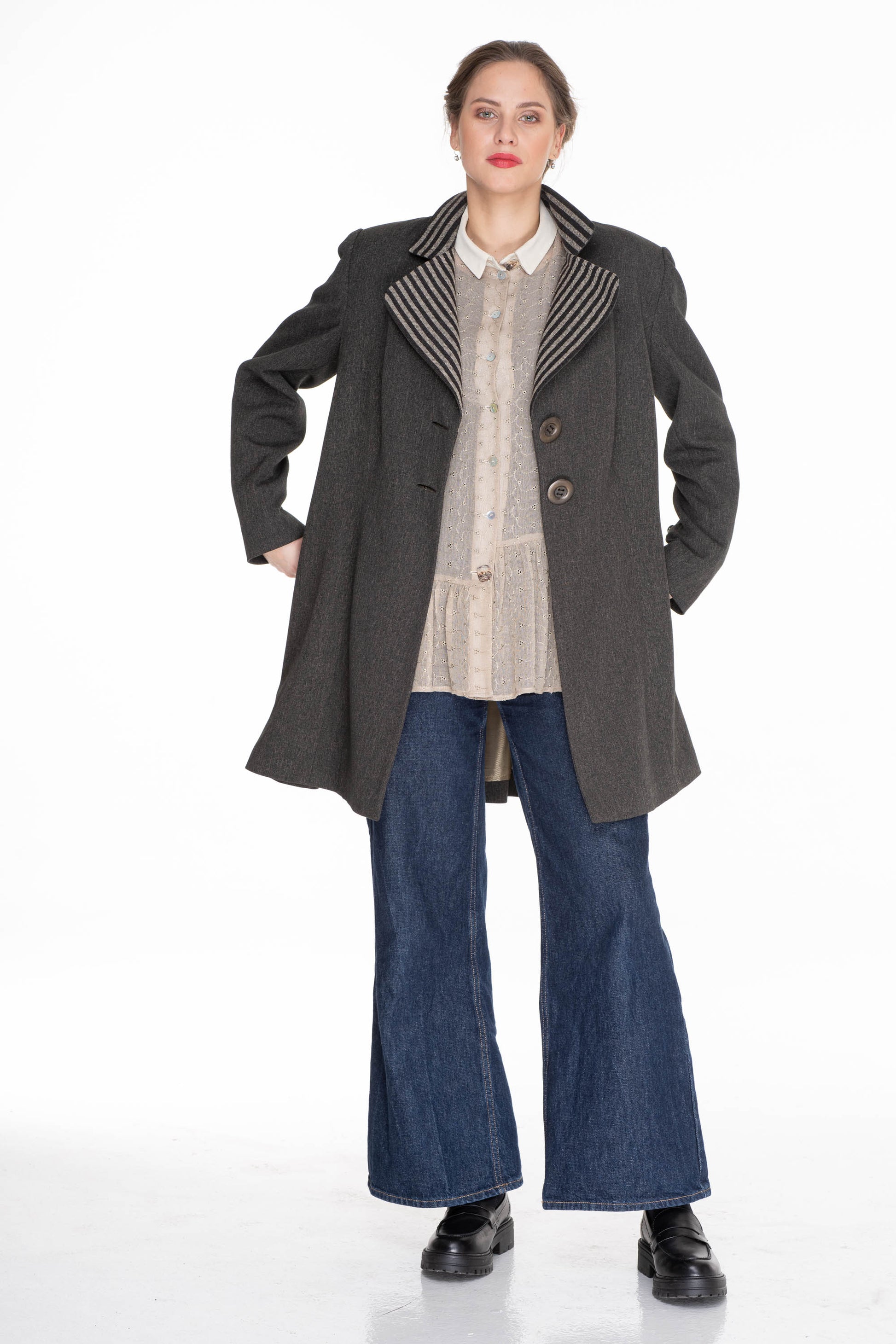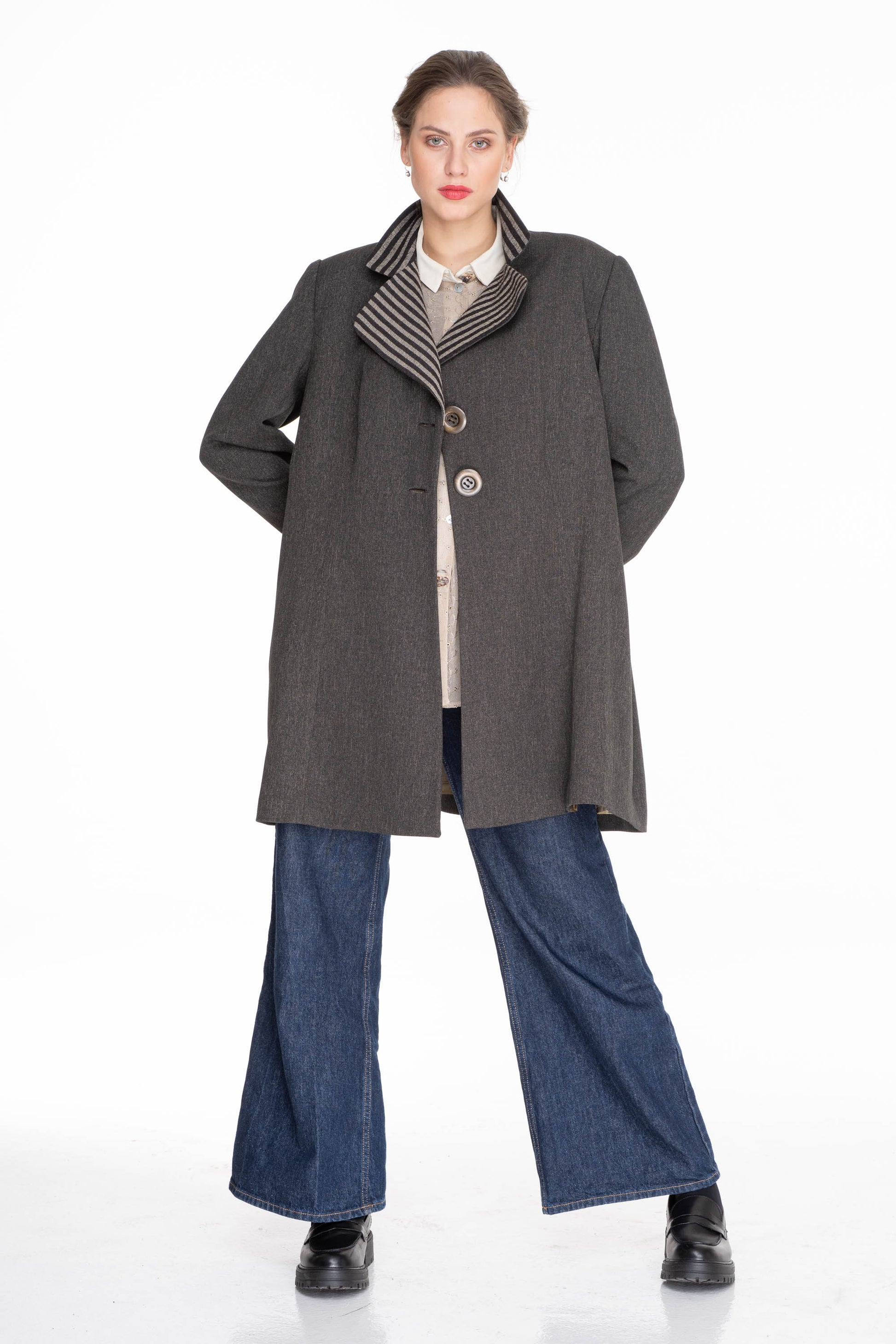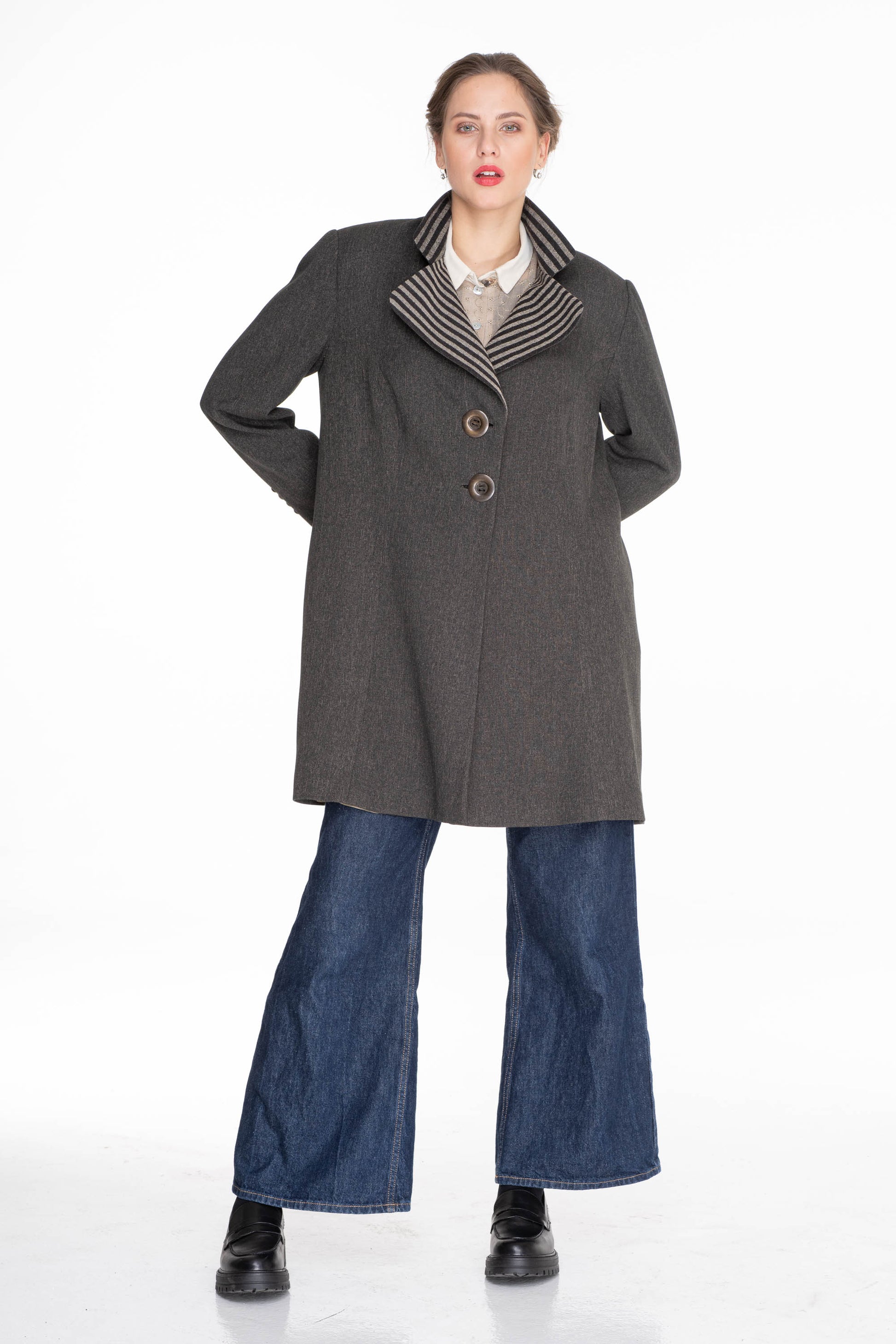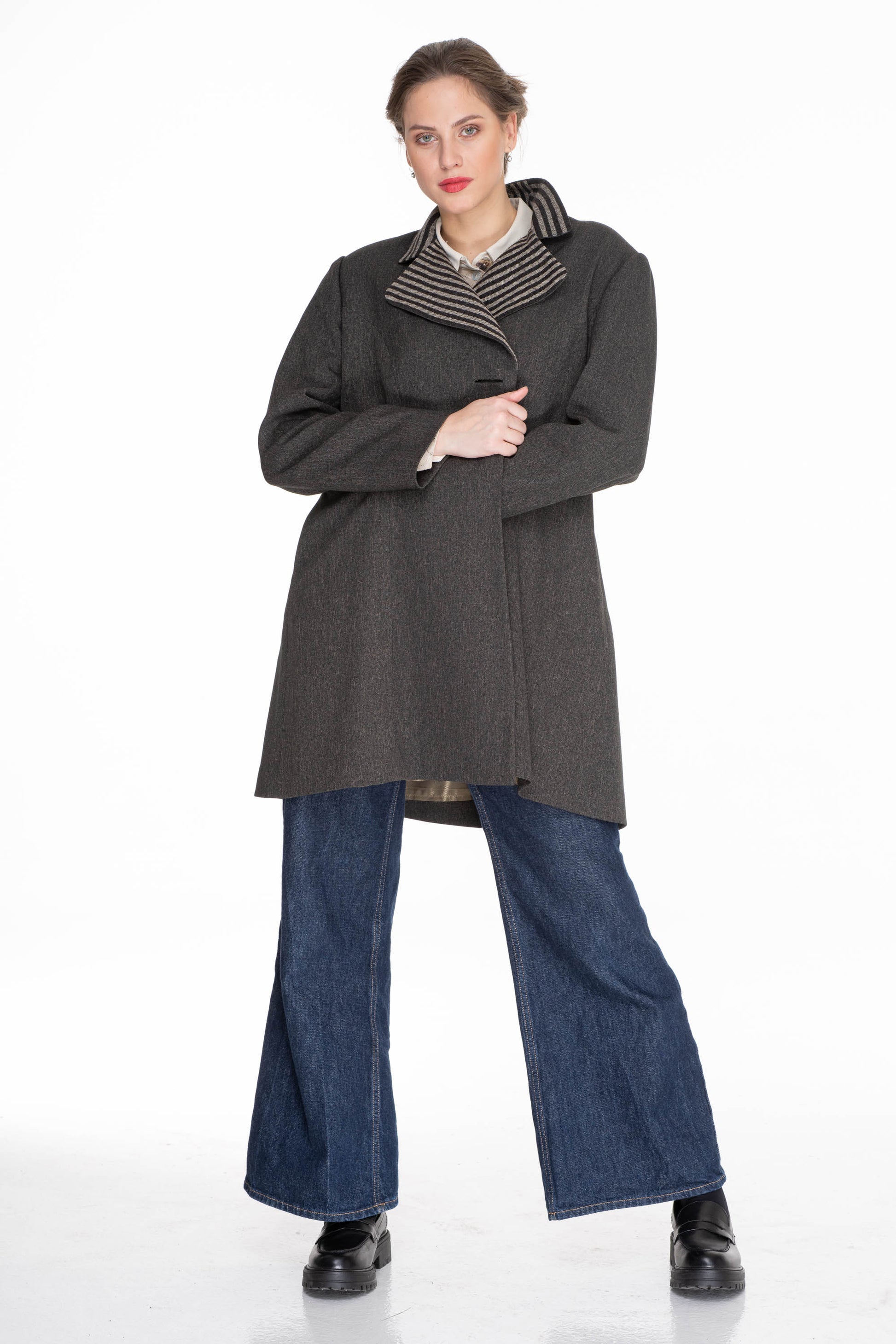 Kabát volného střihu s výraznou fazonou v kontrastní barvě ( Proužky)