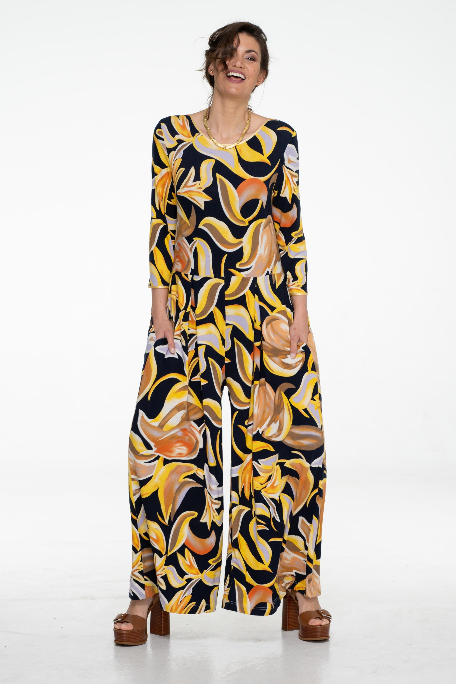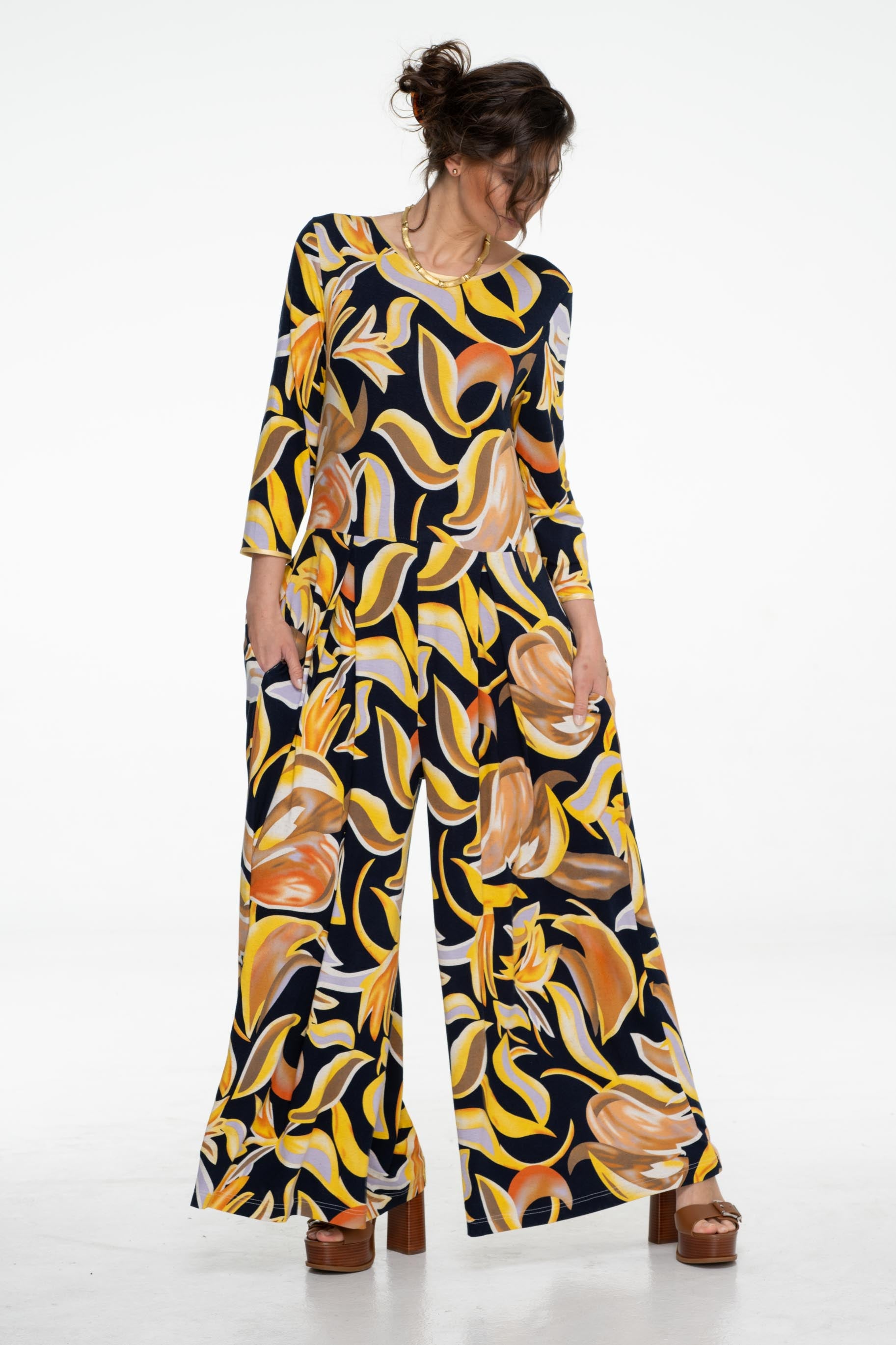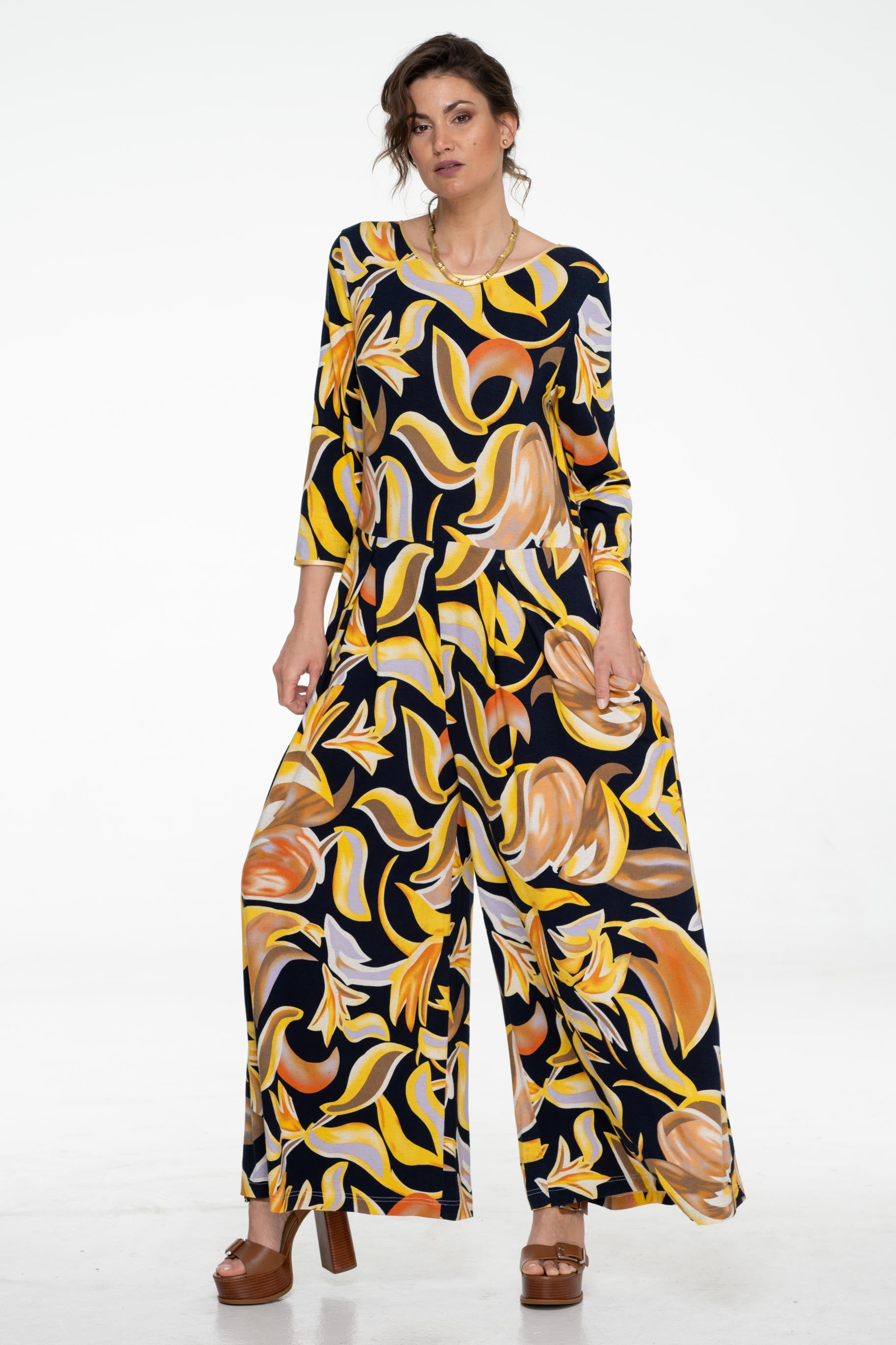 Splývavá kombinéza se širokými nohavicemi, 3/4 rukávy