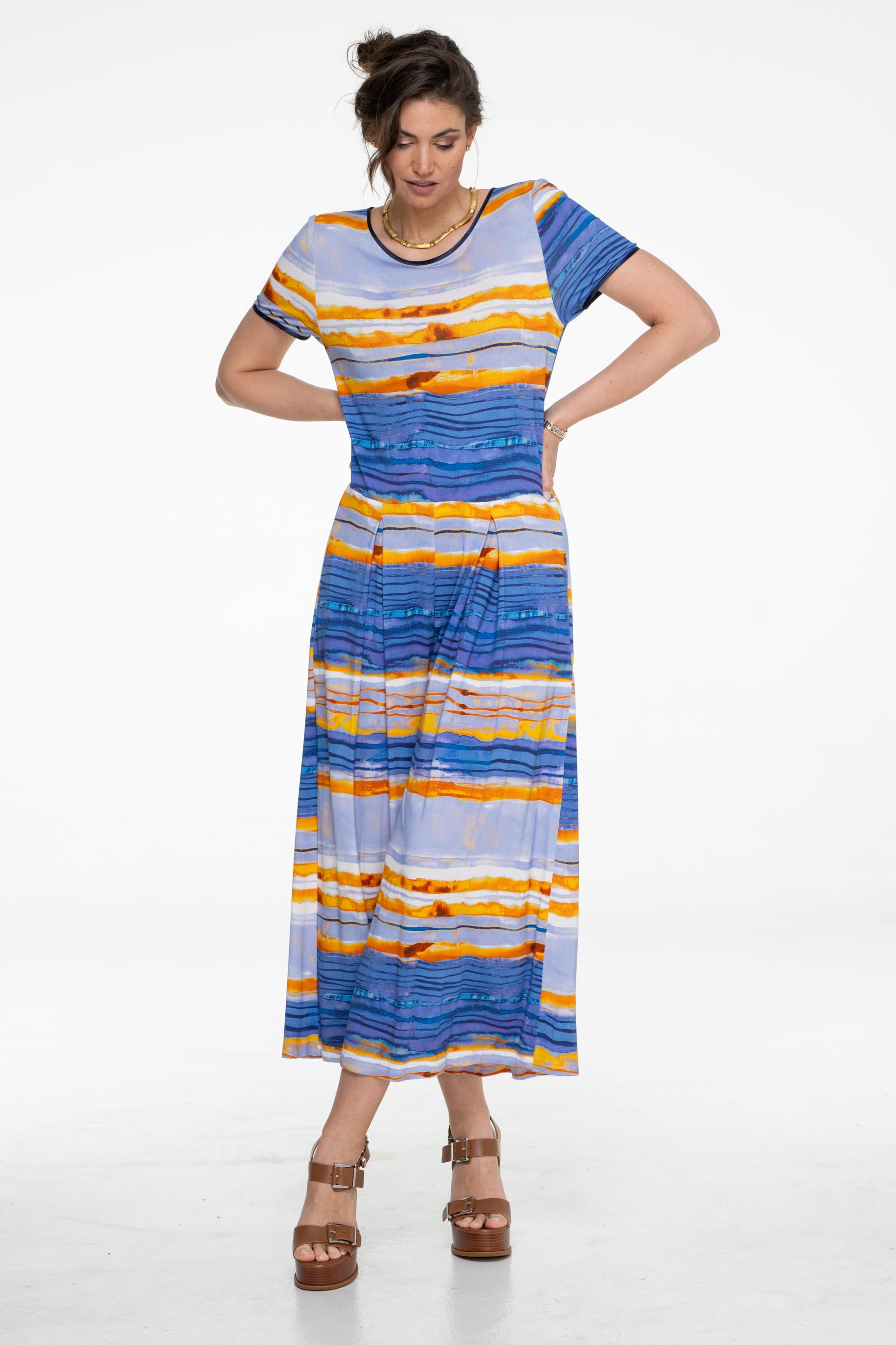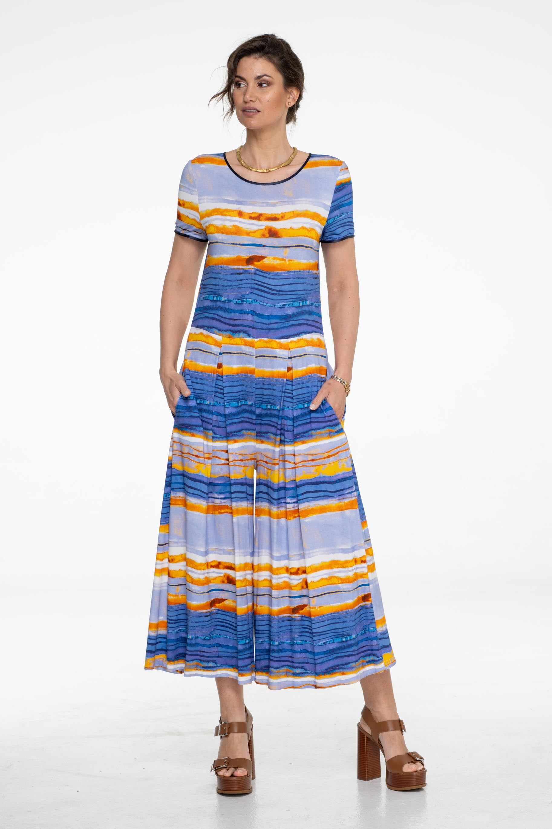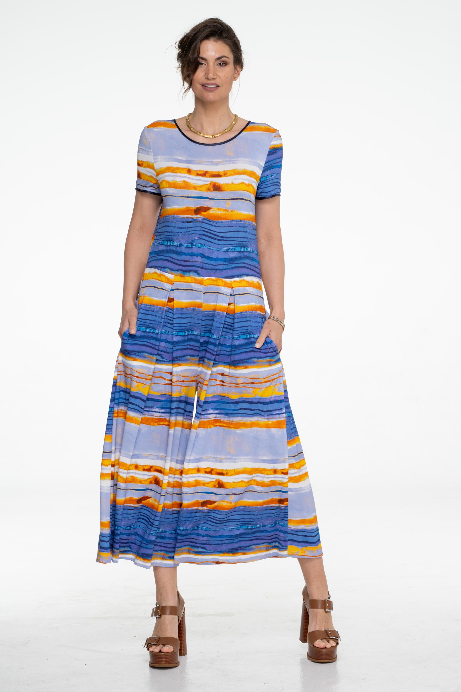 Splývavá kombinéza se širokými nohavicemi, krátké rukávy