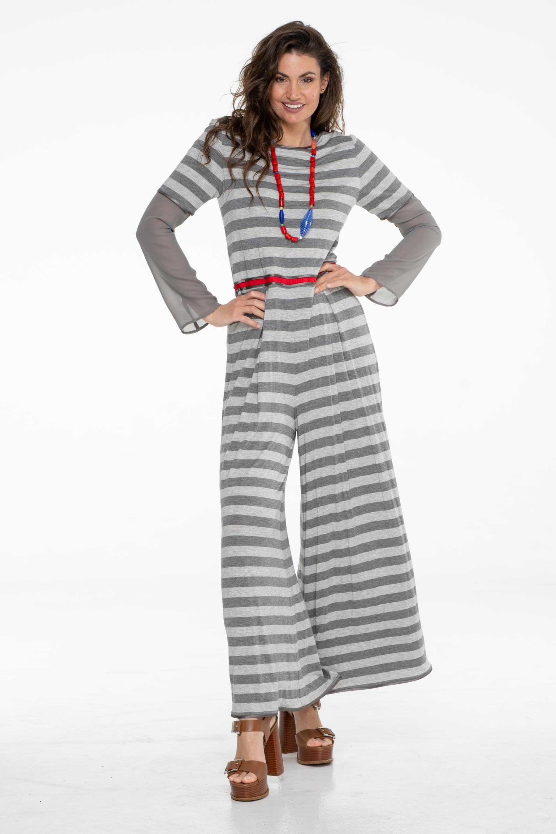 Splývavá pruhovaná kombinéza se širokými nohavicemi, dvojité rukávy