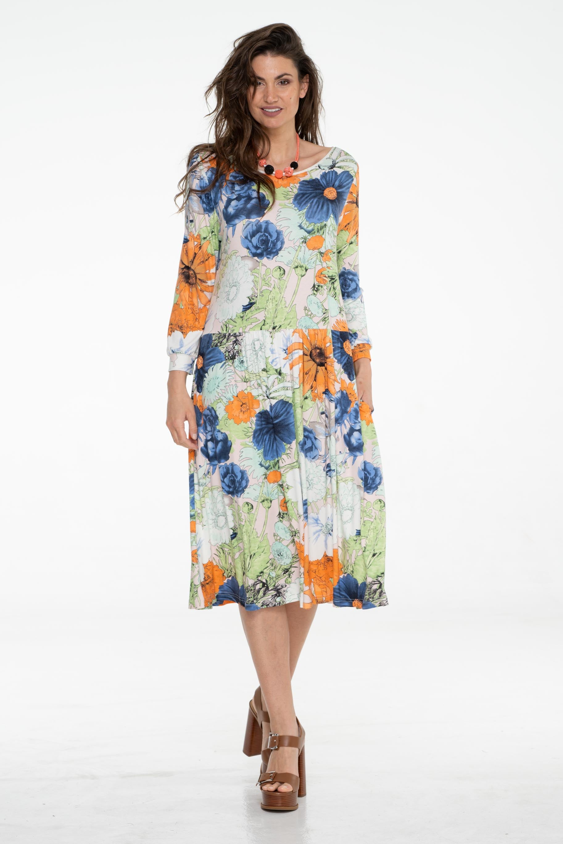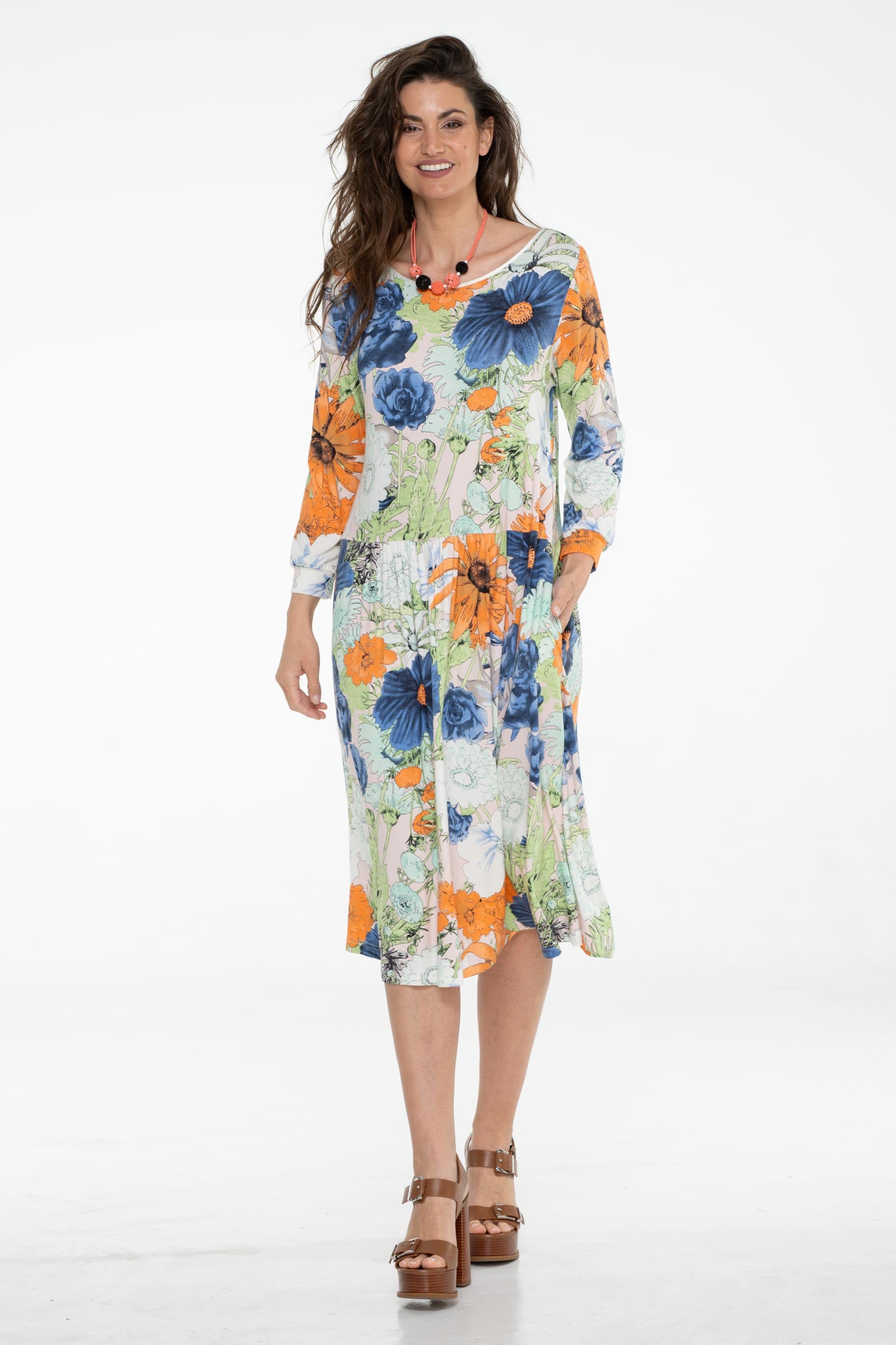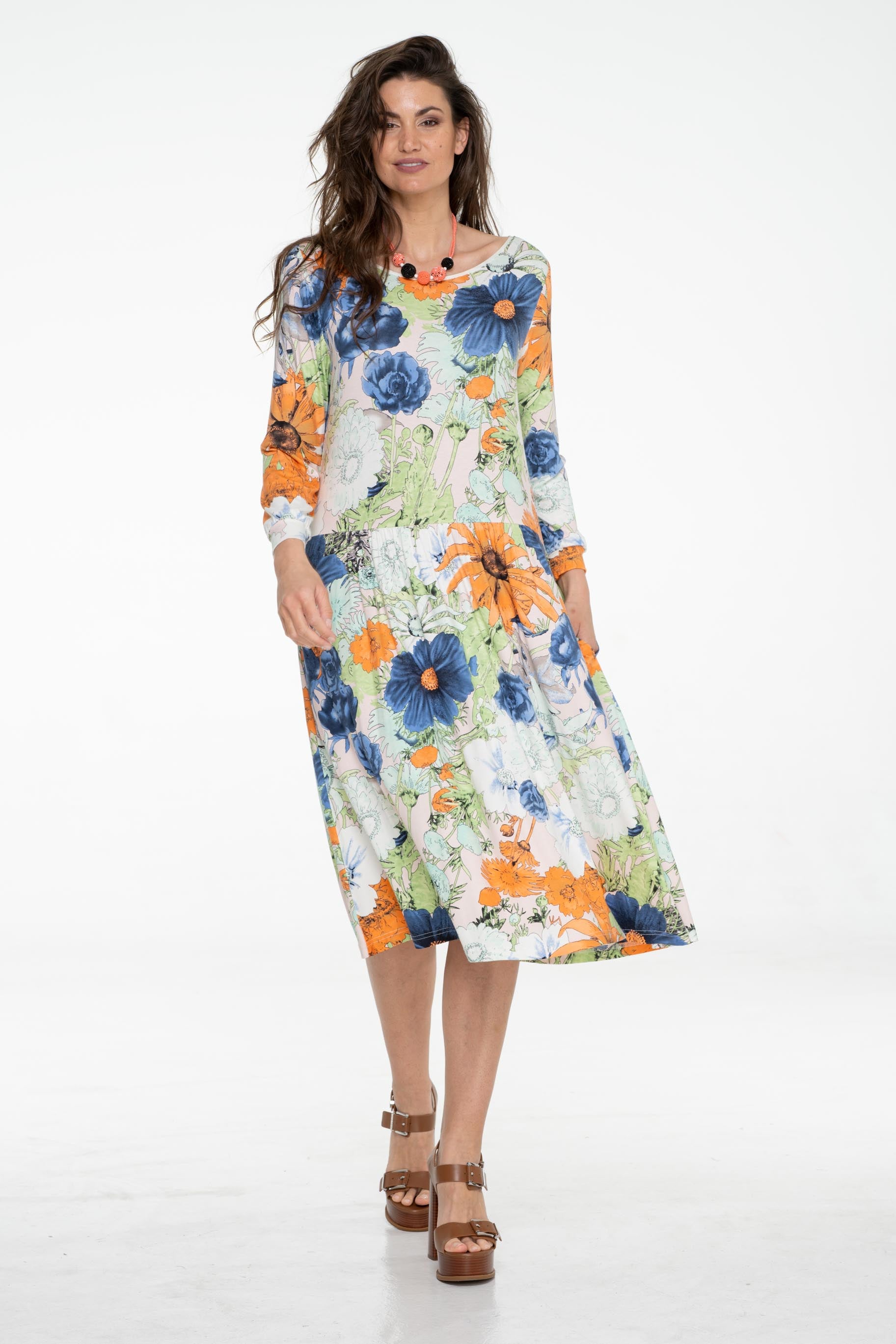 Vzorované šaty s lehce nabíranou sukní, volný střih, kapsy v bočních švech