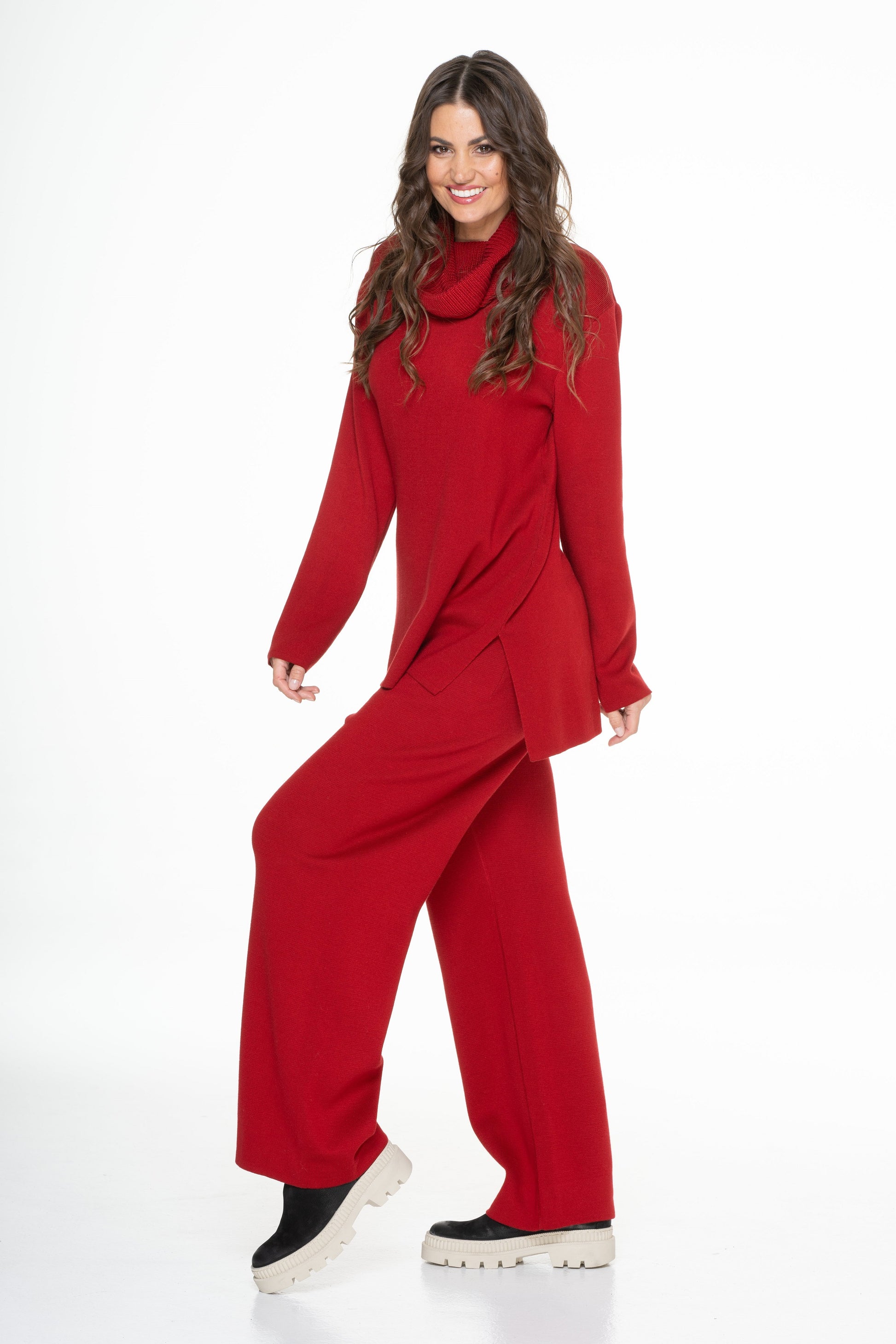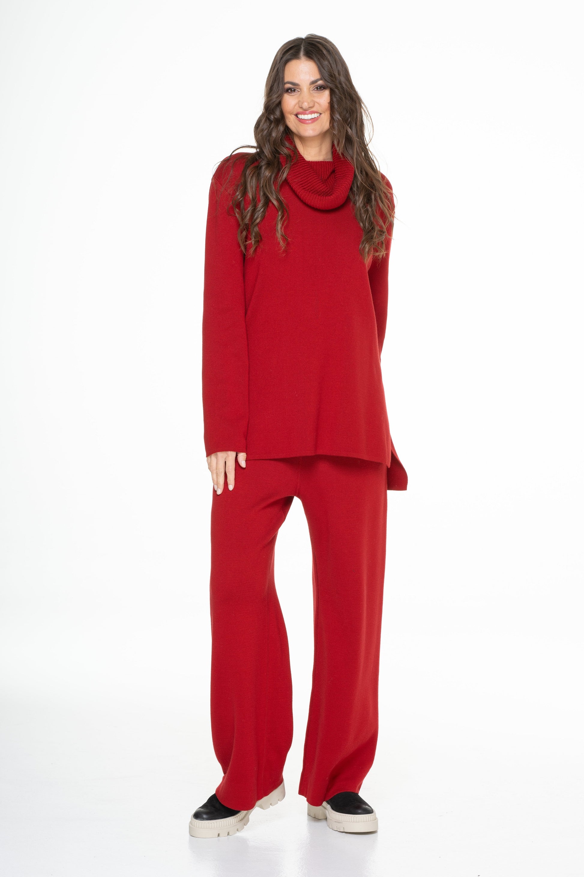 Jednobarevný volný svetr s rolákem