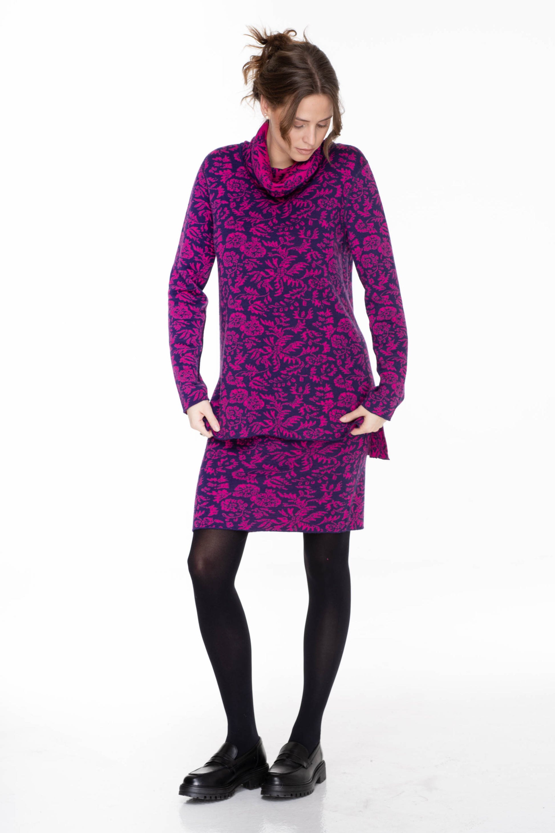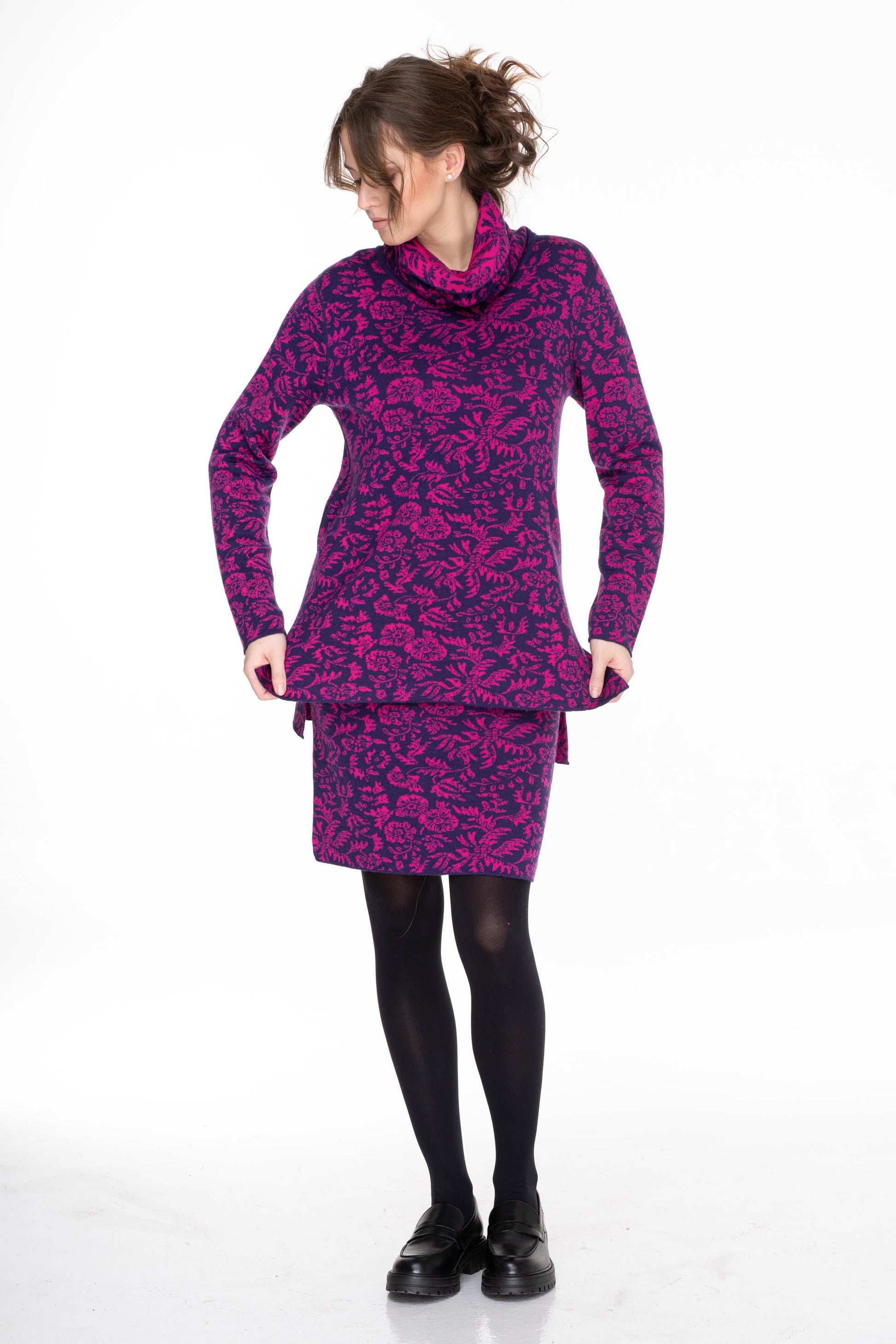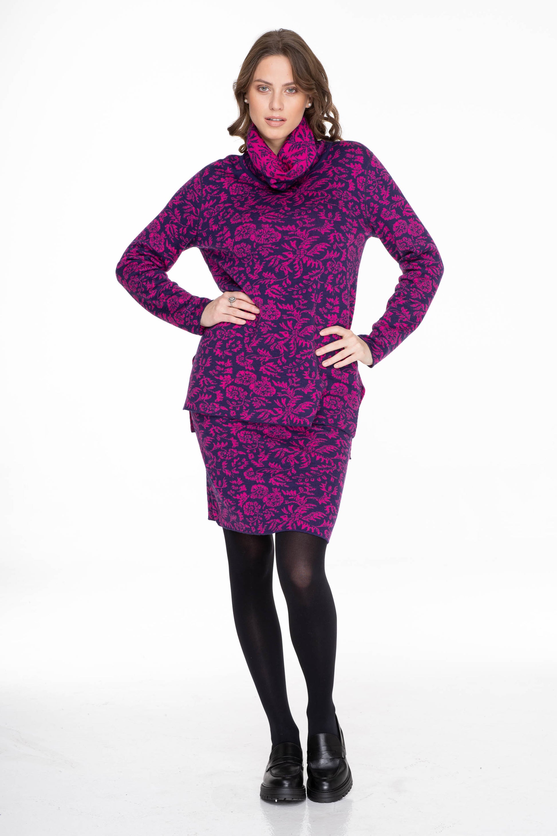 Oboustranný dlouhý svetr s rolákem ( žakárový /květinový /vzor)