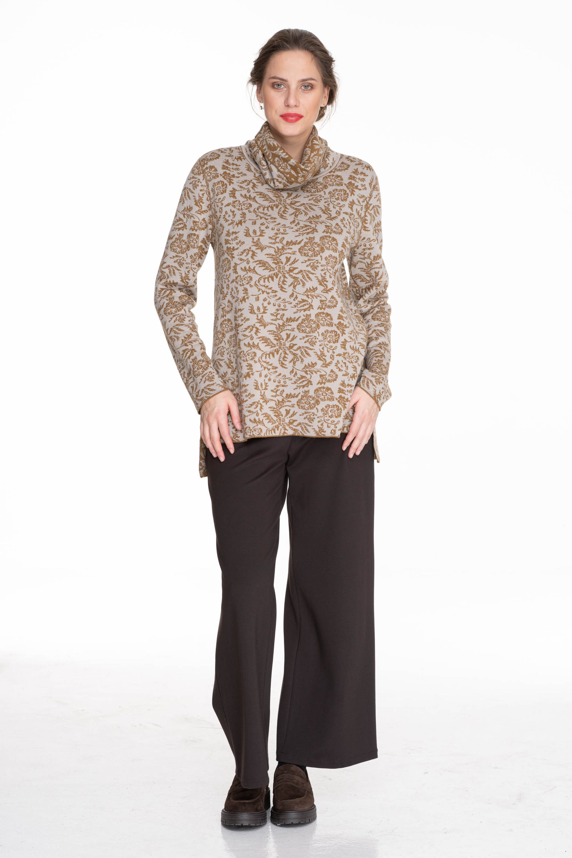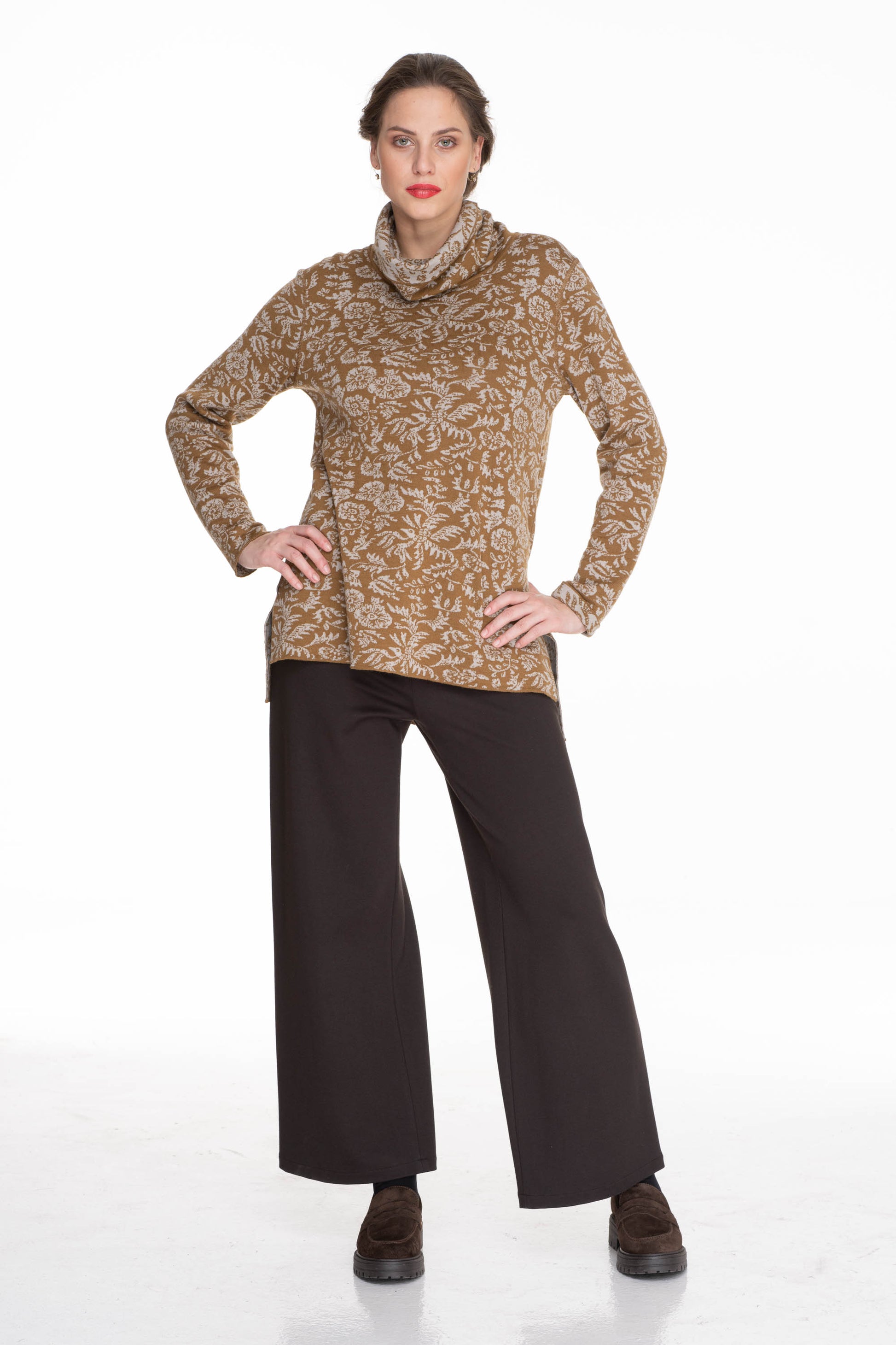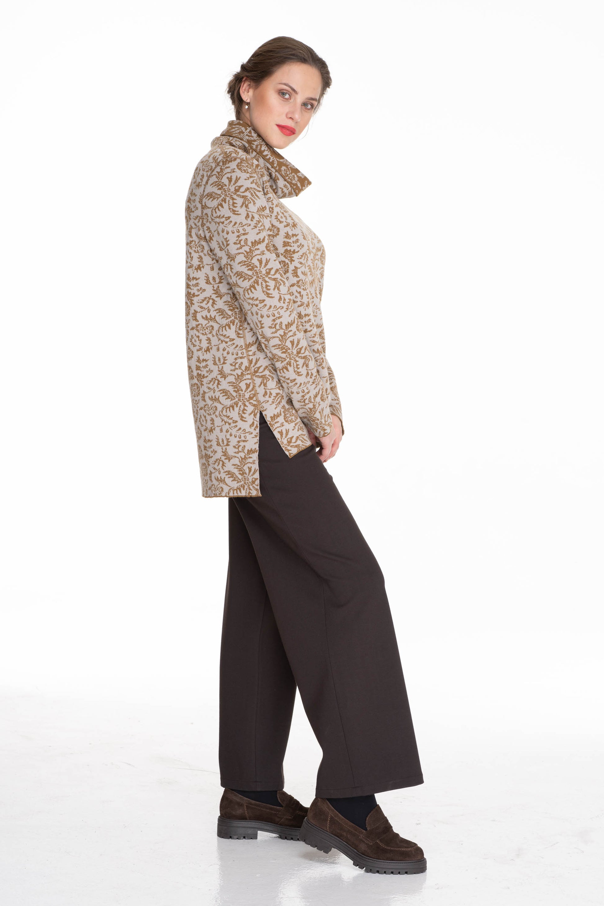 Oboustranný dlouhý svetr s rolákem ( žakárový /květinový /vzor)