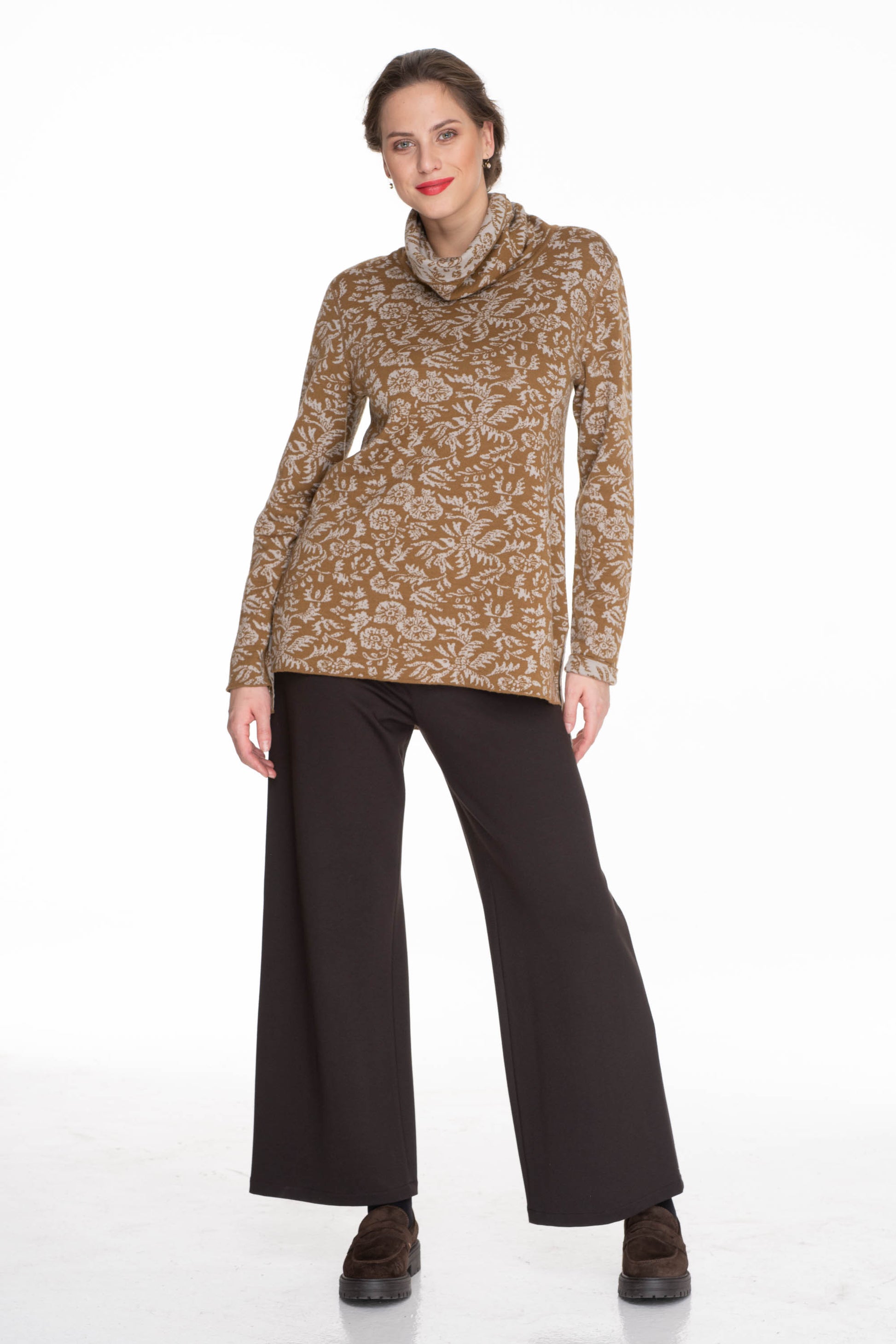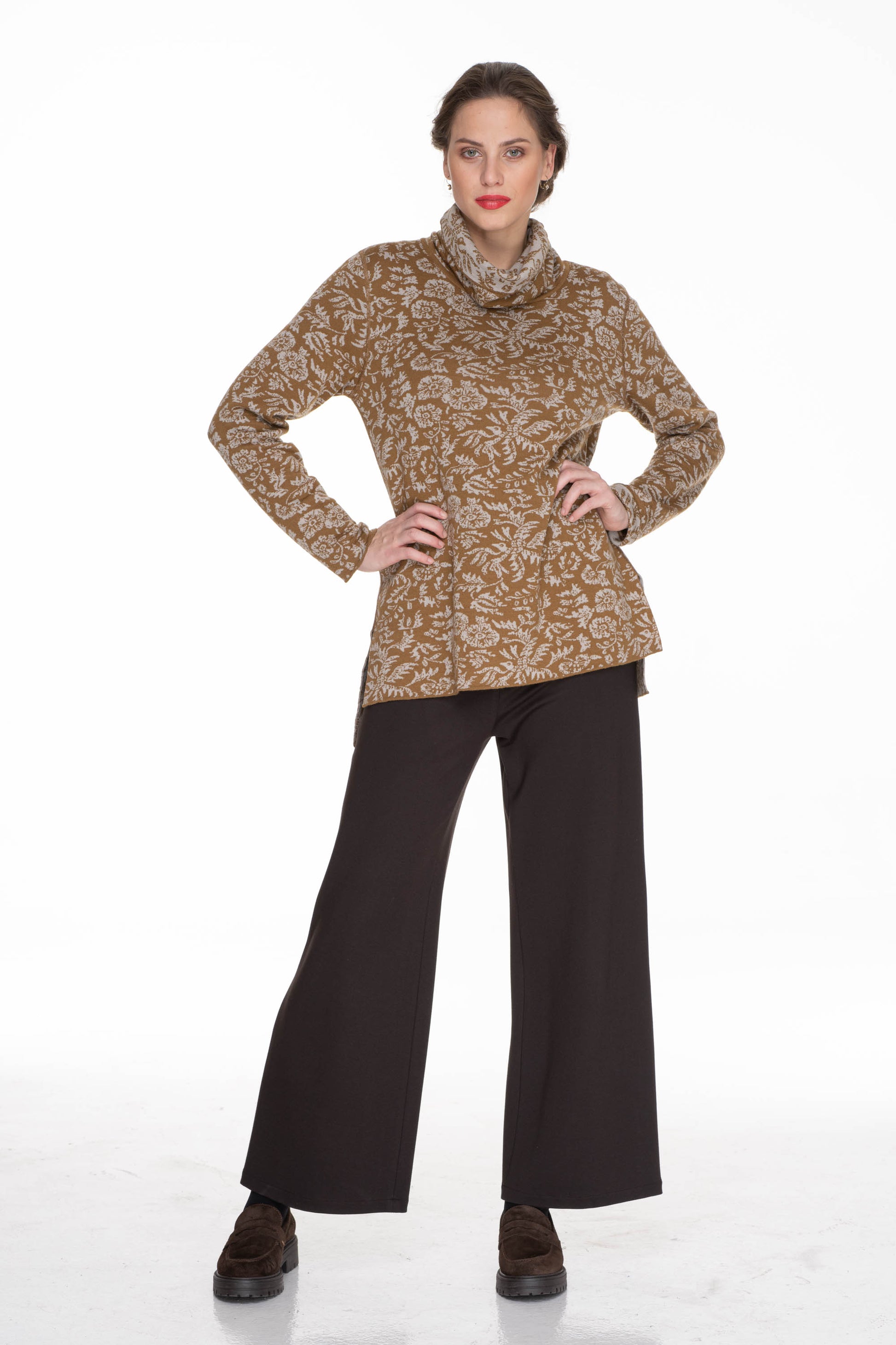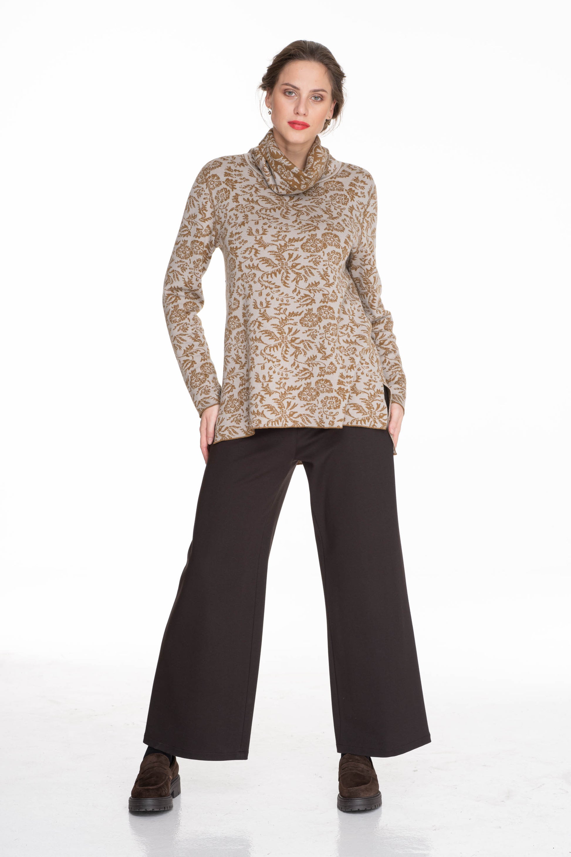 Oboustranný dlouhý svetr s rolákem ( žakárový /květinový /vzor)