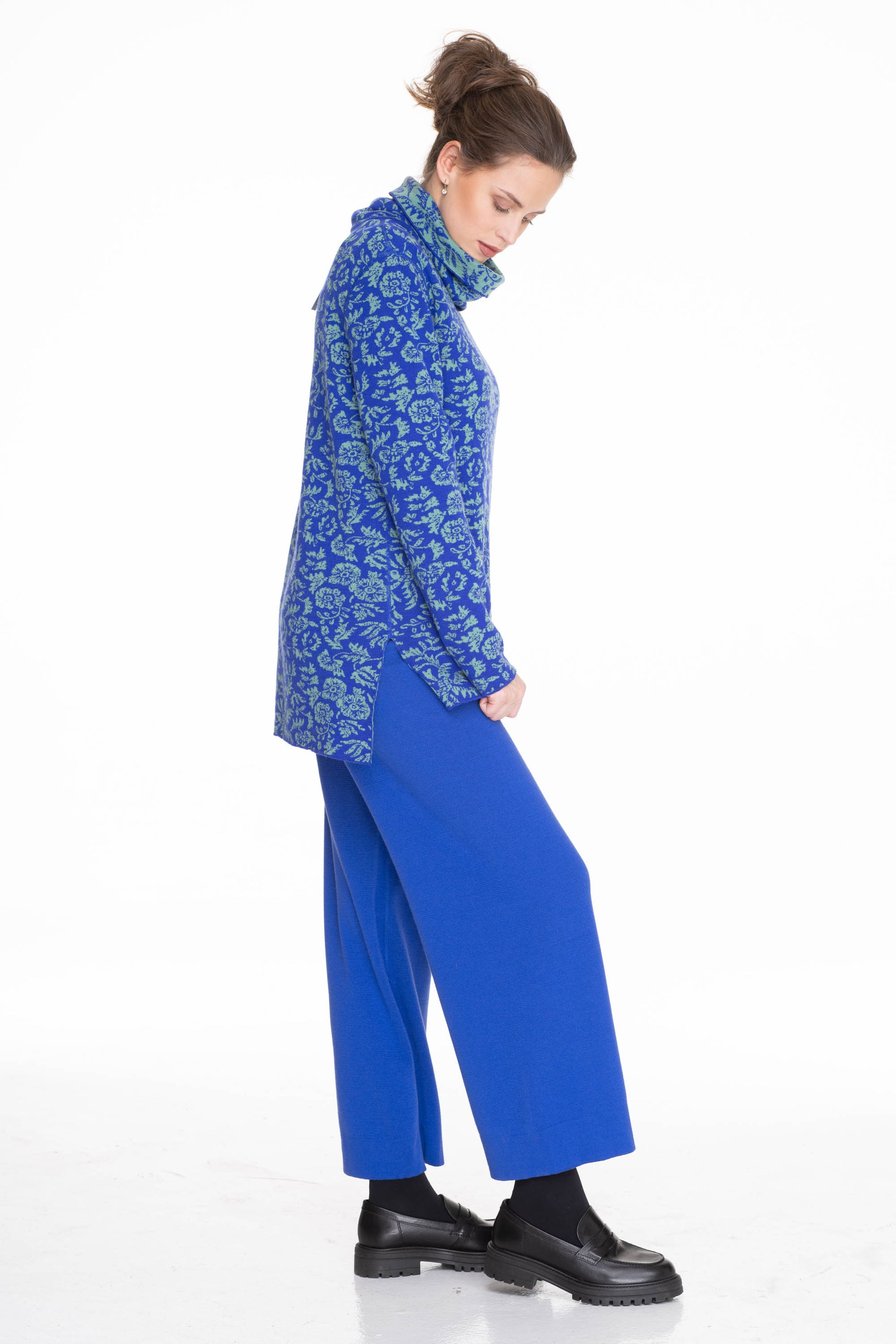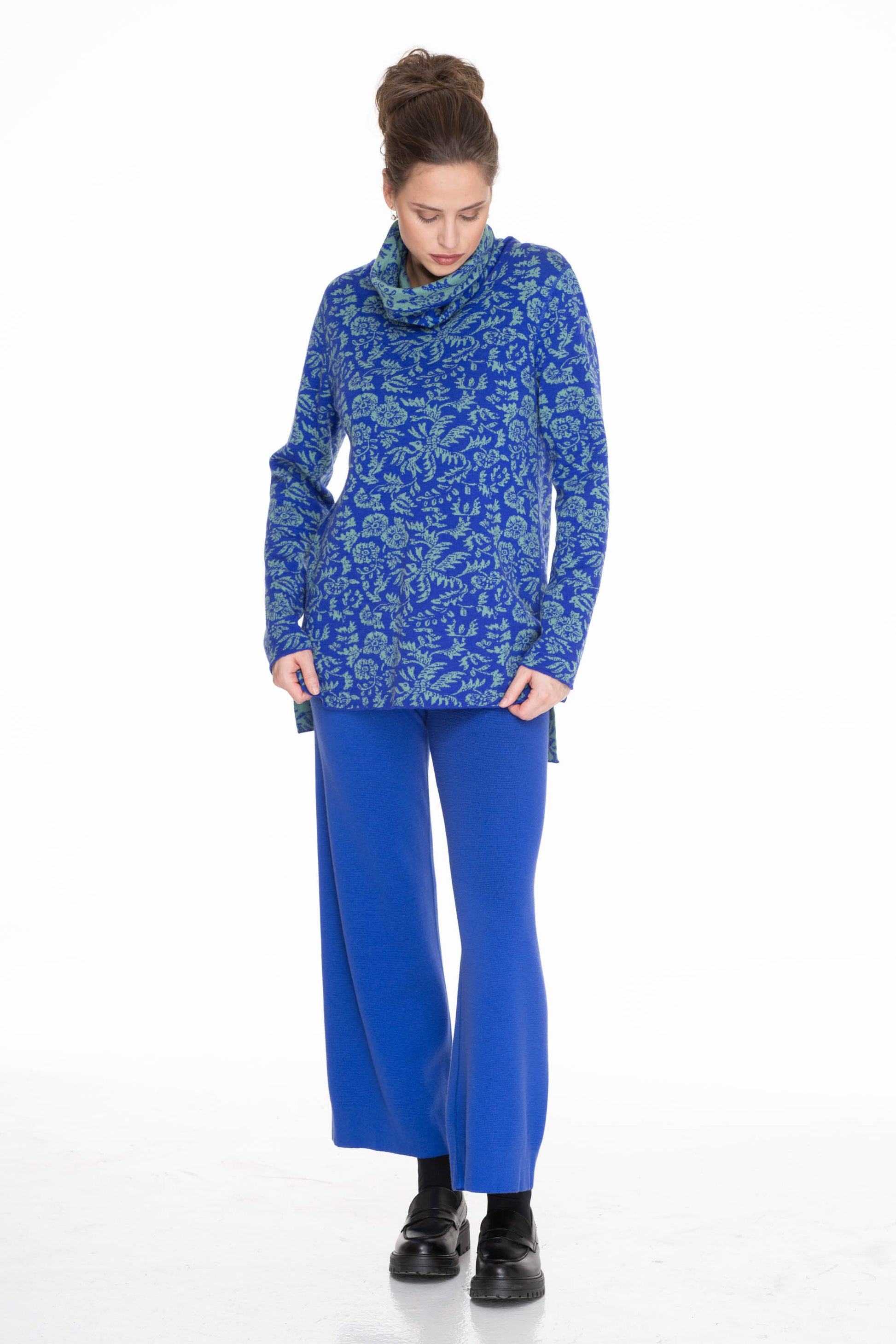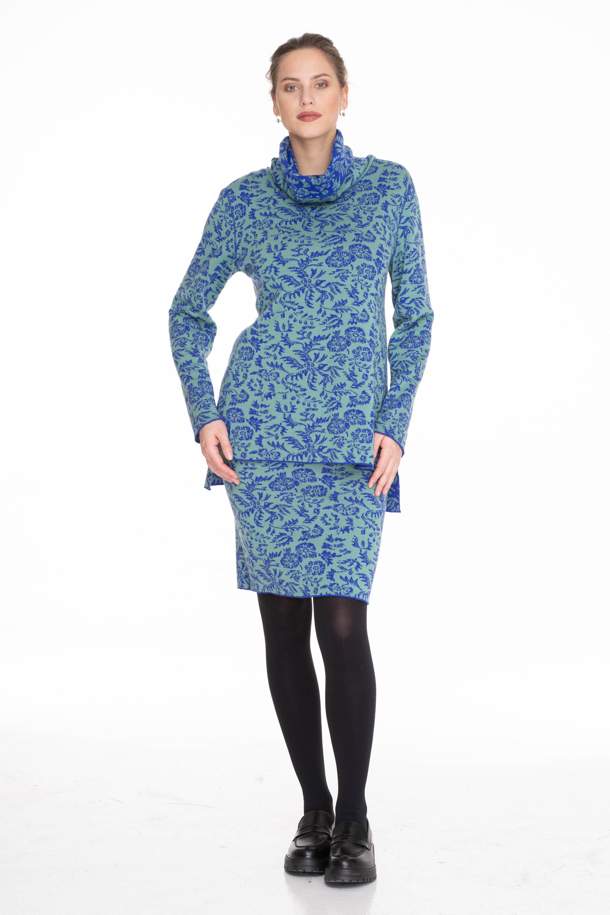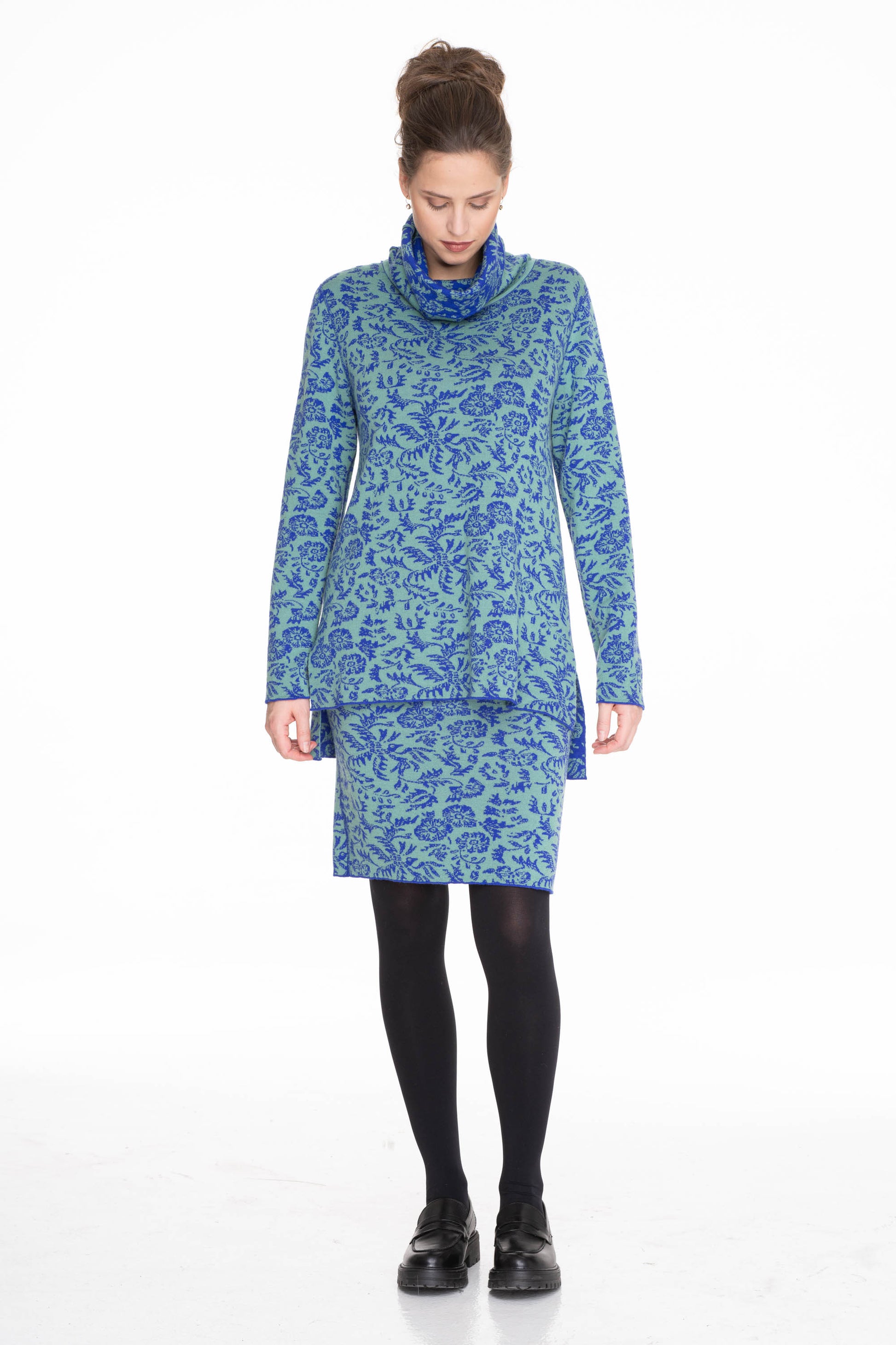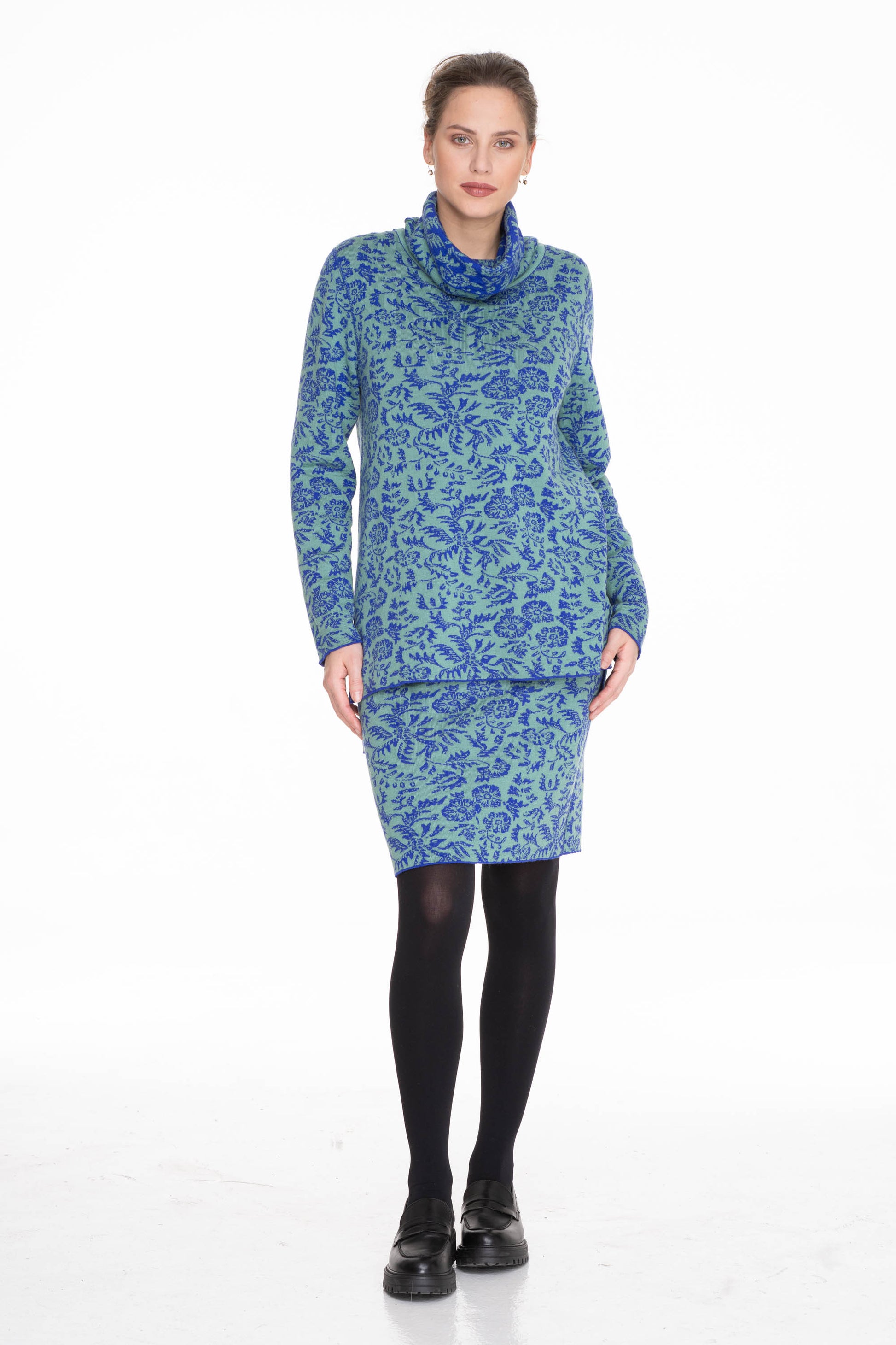 Oboustranný dlouhý svetr s rolákem ( žakárový /květinový /vzor)